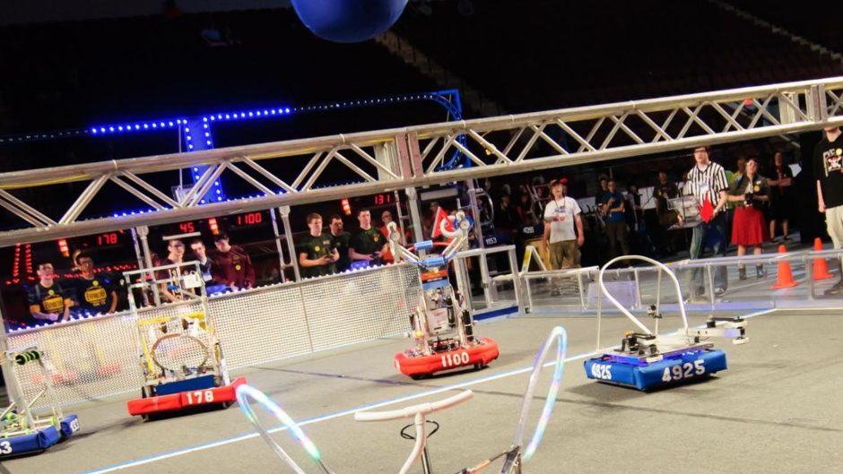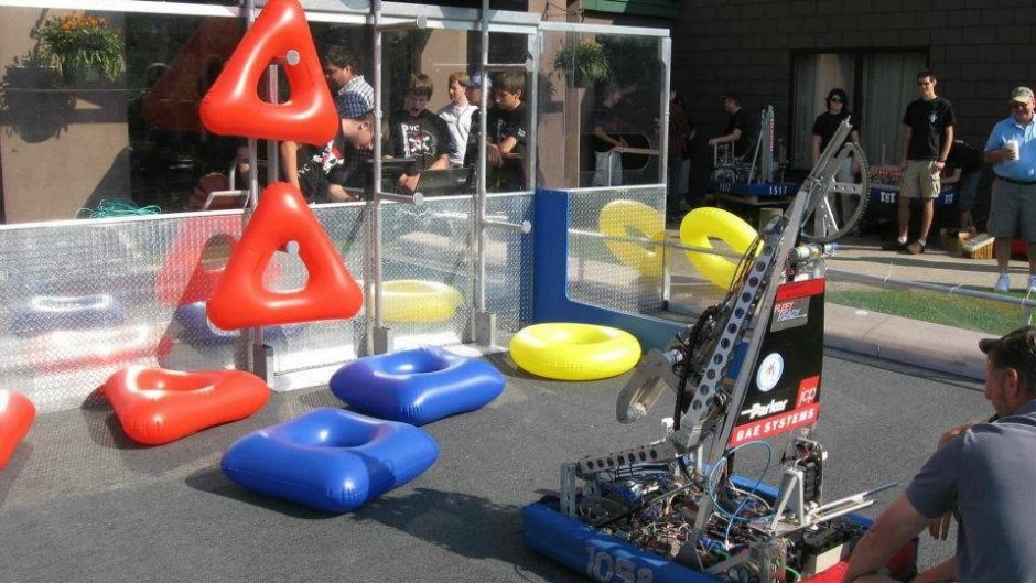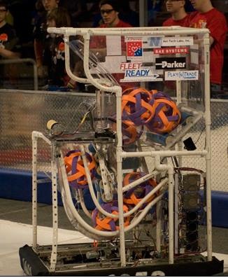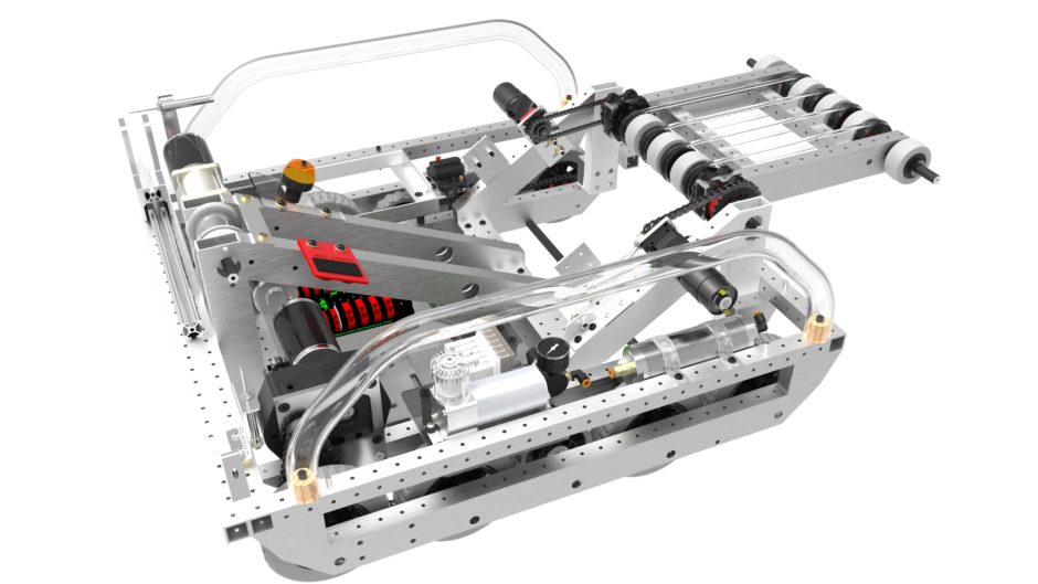 4 CIM Single Speed 6 Wheel Drive 3 Degrees Of Freedom Telescoping Arm: “Shoulder” Pivot: CIM on 64:1 P80 gearbox + 5:1 sprocket reduction with a 112T custom #35 chain sprocket & torque limiting device Telescope: 2x 775pro on 49:1 reduction (ability to fully lift